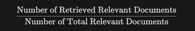Another metric that we can track is recall which measures how many of our retrieved items were retrieved.
